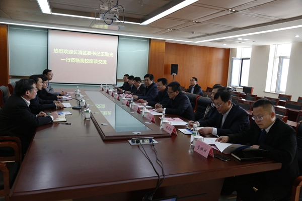 李明勇代表学校对长清区委新一届领导班子的到来表示热烈欢迎,对长清区委区政府给予学校的关注和支持表示衷心感谢,并简要介绍了学校概况、学科建设、专业设置等情况,以及近年来在教学、科研、服务社会等方面取得的成绩。他表示,学校一贯坚持“依托工会,突出特色,为经济社会和谐发展服务”的办学方针,将一如既往全心全力为地方和国家经济社会发展做出应有的贡献。他将学校目前发展中亟需长清区委区政府帮助解决的相关问题进行了说明。