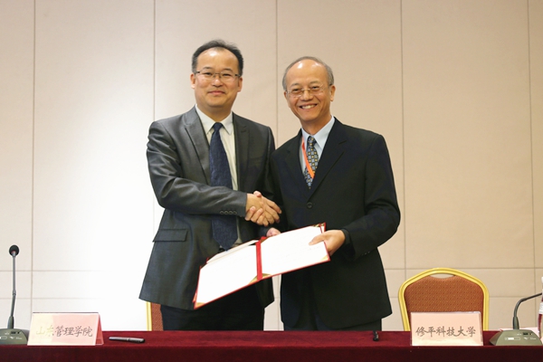 会上,刘全顺还代表学校与台湾修平科技大学、泰国暹罗大学、OHIE等签订合作协议。