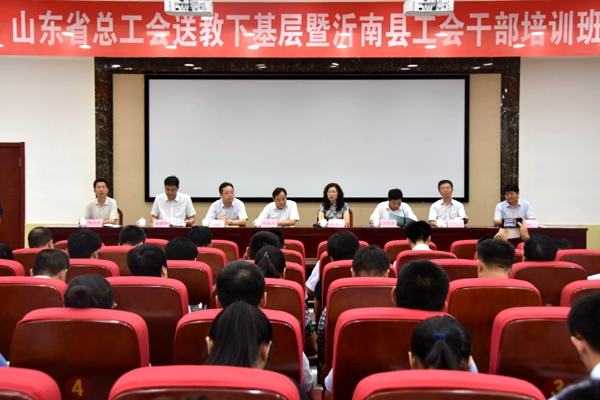 8月8日上午,山东省总工会送教下基层暨沂南县工会干部培训班在沂南县会议中心第一会议室开班。临沂市总工会党组成员、经审委主任高立国,沂南县委副书记、政法委书记唐音波,县人大常委会副主任、县总工会主席张德新,山东管理学院纪委书记房克乐、工会理论研究院院长武玉芳等,以及100多位来自沂南县直机关单位、各乡镇(街道)和中型以上企业的工会主席出席了开班典礼。