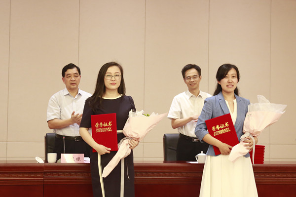 校领导为学校2017年度最美教师杨琪、师德标兵郭伟宏颁发证书,为今年获批国家社会科学基金和国家自然科学基金项目的王惠庆、钱祥利两位博士颁发科研标兵荣誉证书,并为2016年度优秀教师、优秀教育工作者颁奖。学生们向获奖教师献上了鲜花。