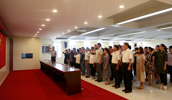 全体新聘教师在杨成宝的带领下面向国旗,庄严宣誓,作出了山管教师的庄严承诺。
