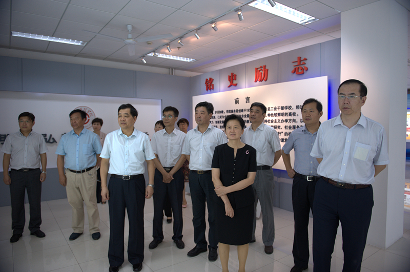 随后,在学校领导的陪同下,尹慧敏一行先后来到省工会干部培训基地、在建的大学生文体中心、图书馆、校史馆等现场进行了实地察看。每到一处,尹慧敏都仔细察看,不断询问,给予指导。尹慧敏强调,学校今后发展还要围绕“工会特色”做文章,适应工会事业和经济社会发展需要,加强工会理论研究和人才培养,充分发挥工会干部教育培训的主阵地作用,为推进全省工运事业发展积极贡献力量。