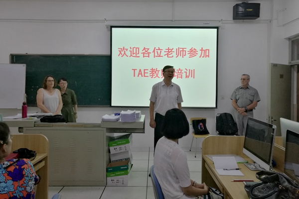 董以涛向两位远道而来的外国培训师以及各高校参训教师表示热烈欢迎,并简要介绍了学校发展历程、基本情况、办学特色等,预祝各位参训教师顺利结业,获取TAE四级证书。