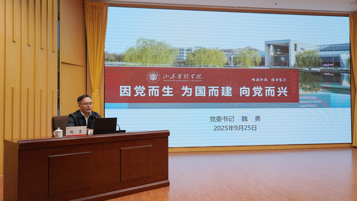 授课中,魏勇从“因党而生:烽火淬炼的红色根脉”“为国而建:时代担当的奋斗征程”“向党而兴:对标时代的跨越发展”“薪火永续:以校史涵养红色基因”四个方面,全面回顾了学校建校87年的光辉历程:从1938年沂蒙烽火中创办山东省职工干部学校,培养工运骨干支援抗战;到济南解放后组建济南市职工学校,动员学员南下参与全国解放与建设;再到新时代改建本科高校、获批硕士立项建设单位,始终紧跟党和国家步伐。同时,也介绍了学校通过校史研究、艺术创作、乡村振兴帮扶等举措传承红色基因的生动实践,展现了学校在教书育人、科研攻坚、服务社会、创新发展等方面取得的主要成就。