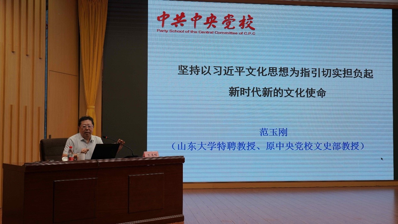 为深入学习贯彻习近平文化思想,弘扬中华优秀传统文化,切实铸牢中华民族共同体意识,深化“花开石榴红 共铸中华魂”学校民族工作品牌活动内涵,9月26日,学校邀请山东大学特聘教授、原中央党校文史部范玉刚教授为师生作《坚持以习近平文化思想为指引 切实担负起新时代新的文化使命》专题讲座。党委副书记孙琪主持讲座。