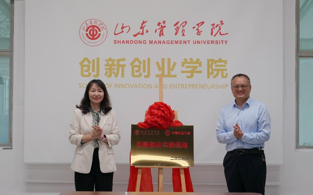 会上,创新创业学院与长清区总工会达成共建创新创业基地协议,并为基地揭牌。