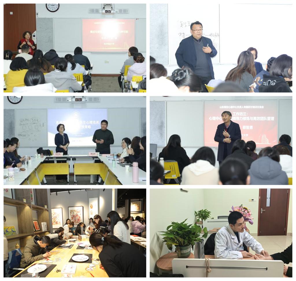 案例督导与名师工作坊是本次研讨交流会的创新之举。山东省精神卫生中心主任、山东大学乔冬冬教授针对高校心理咨询及心理危机干预中的案例进行了专业督导。同时,乔冬冬与山东省精神卫生中心日间诊疗科主任李翠鸾共同带领了“我们如何守护生命:高校心理危机干预的协同机制与实践难点”工作坊;李媛教授以“痛点与破局:心理健康课的N种可能”进行了主题工作坊的分享;南京审计大学心理健康教育教学部书记蔡智勇教授以“心理中心主任的领导力修炼与高效团队管理”为主题,为参会人员提供了针对性的实践指导。此外,会议特别设置晚间工作坊、非遗展馆参观体验与“聆听身心”中医义诊工作坊,从不同视角将传统文化与身心健康理念有机融合,拓展了心理服务的多元维度。