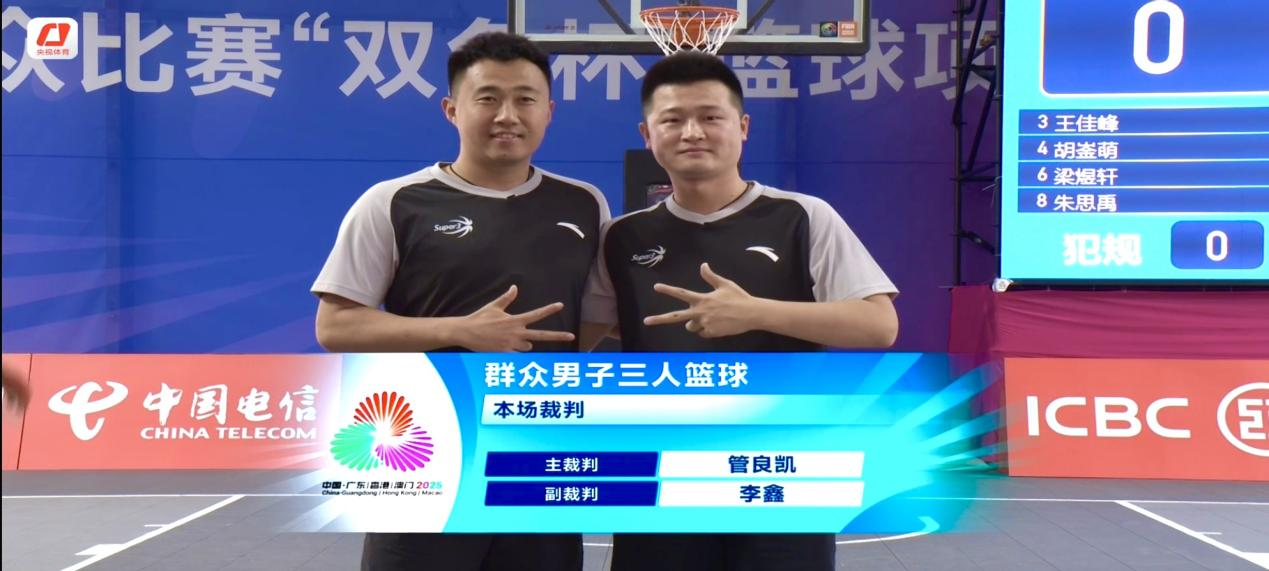 日前,中华人民共和国第十五届运动会(以下简称“第十五届全运会”)群众赛事活动三人篮球项目决赛在紧张激烈的氛围中落幕。我校体育教学部教师管良凯凭借其精湛的业务能力和良好的职业素养,经严格选拔,受邀担任三人篮球项目决赛的裁判员,并圆满完成了执裁任务。