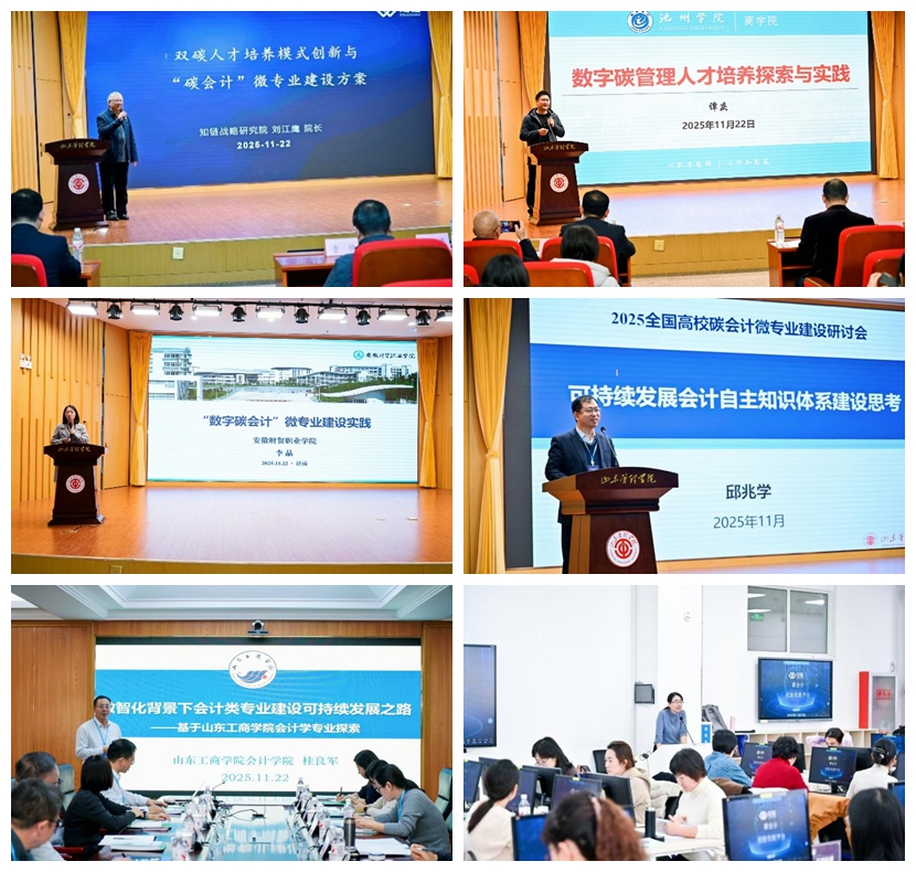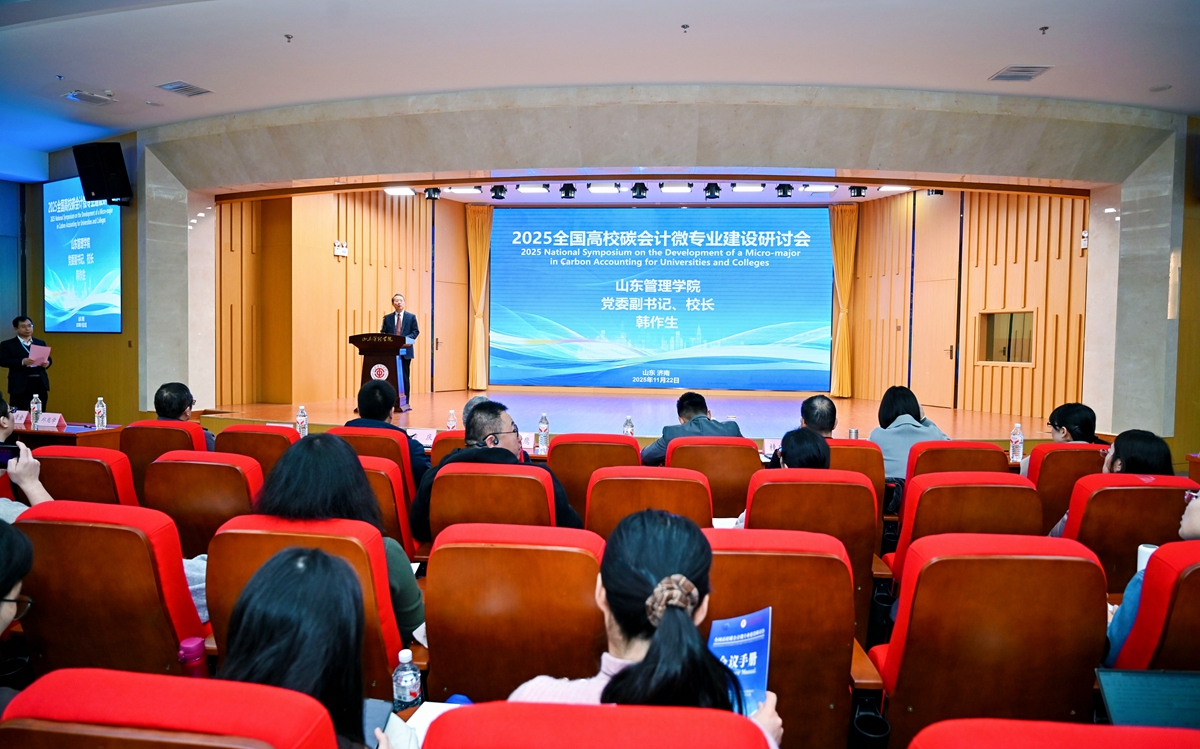 11月22日,学校举办2025全国高校碳会计微专业建设研讨会。本次研讨会由北京知链科技有限公司和山东管理学院联合主办,山东管理学院会计学院承办,山东中和碳排放服务中心有限公司和北京鸿媒教育科技有限公司协办。来自全国30多所高校、企业及科研机构的130多位专家学者参加,共同研讨“双碳”背景下碳会计微专业建设路径和实施范式。