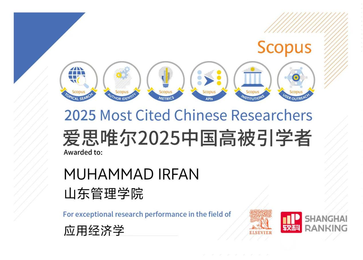 1月30日,爱思唯尔(Elsevier)正式发布2025年“中国高被引学者”(Highly Cited Chinese Researchers)榜单,来自543所高校、企业及科研机构,覆盖教育部10个学科领域、83个一级学科的共计6310名学者入选。学校工商学院伊凡(MUHAMMAD IRFAN)教授连续三年(2023-2025)荣登该榜单。