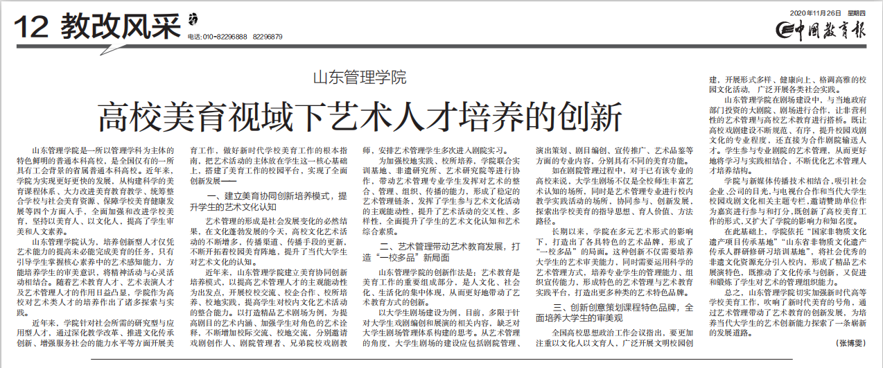 【中国教育报】高校美育视域下艺术人才培养的创新