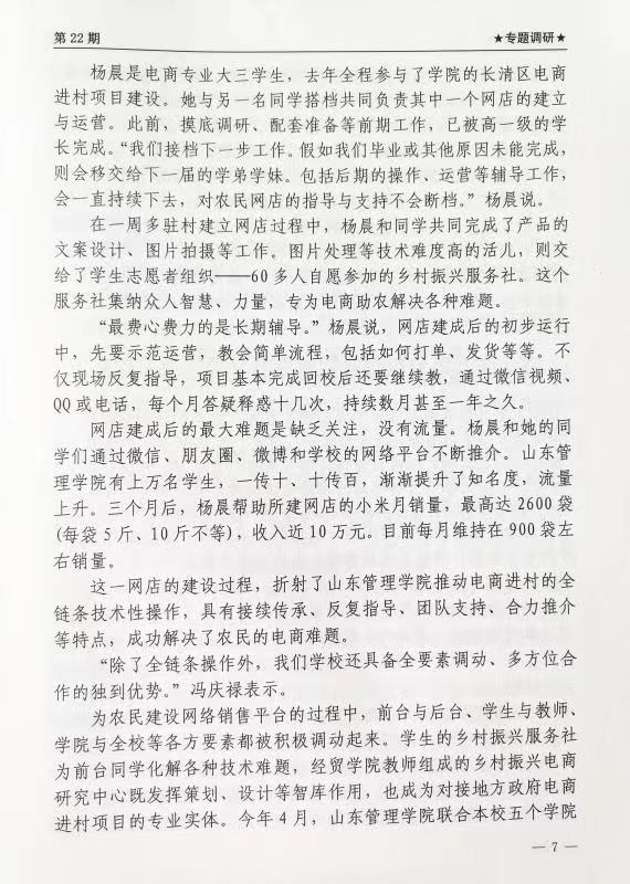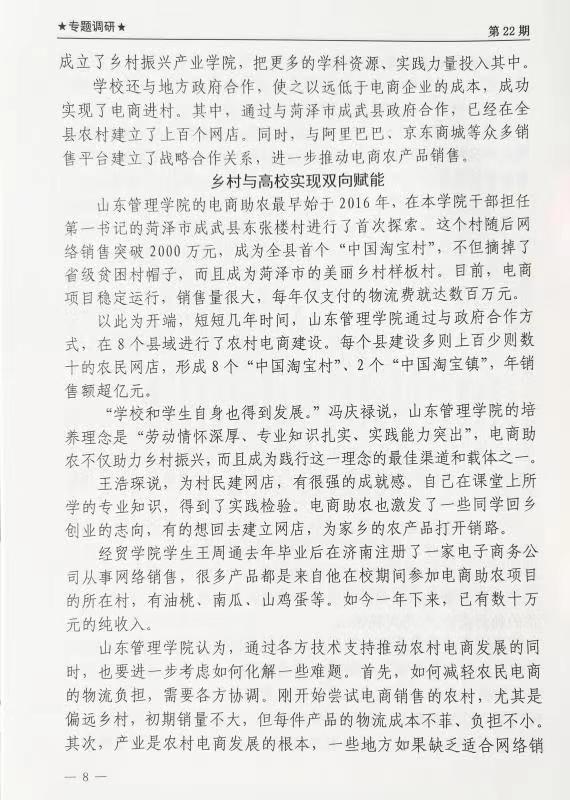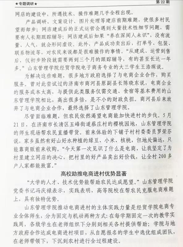 【新华社 高管信息】高校进村实施电商助农大有可为——山东管理学院电商助农的实践启示